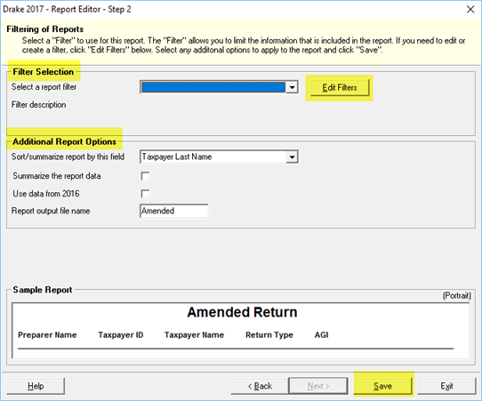 - Report Editor, Step 2 (Figure 3) – Here you can filter your report column choices: